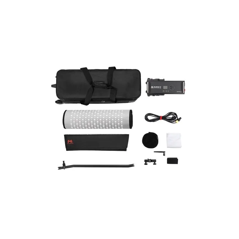 1x Falcon Eyes RX-48TDX II LED panel 45x120 cm;1x X-bracket;1x Softbox RX-48OB II; 1x Diffusion cloth; 1x Honeycomb; 1x Tiltable bracket; 1x Control unit; 1x Antenna; 1x Mains cable; 1x Manual; 1x Carrying bag