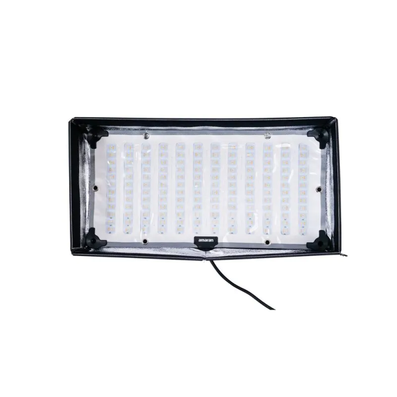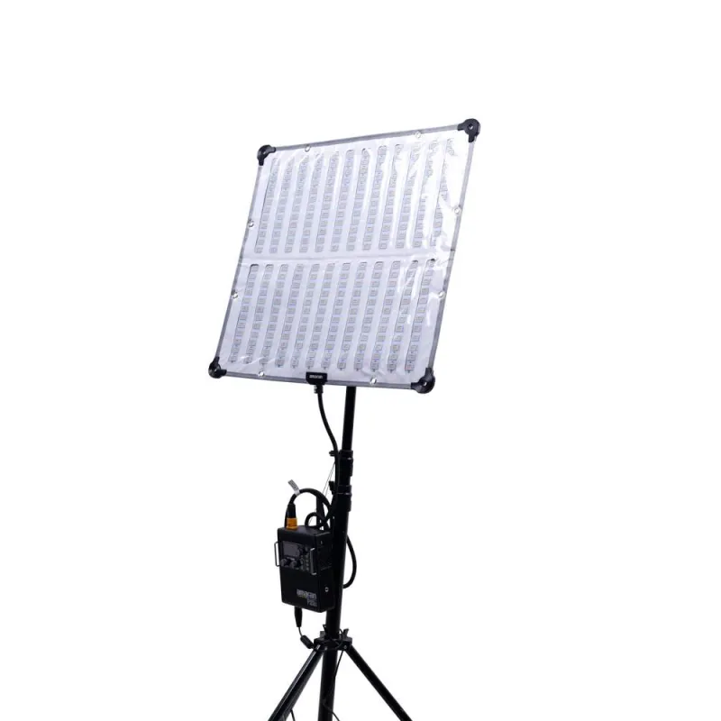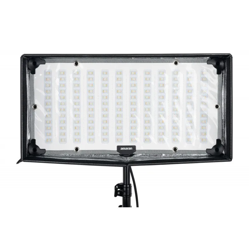 The F21c RGBWW LED Mat from amaran is a powerful, versatile, and flexible LED mat that measures 2 x 1'. It offers outstanding light output and color rendering suitable for a variety of users, from filmmakers to videographers, content creators, and still photographers. Providing 100W of power, it features RGBWW LEDs for complete color control, as well as tunable CCT from 2500K to 7500K, providing endless possibilities for creative lighting selections through 360 HSI control, 46 color gel presets, and 15 unique customizable lighting effects. It has stellar CRI and TLCI scores of 95+ and 97+, and stepless dimming from 0 to 100. An included folding X-frame stretches the mat to a rigid panel that can be attached directly to a C-stand grip head using the straight Baby Pin adapter, or onto any standard light stand with the included right angle Baby Pin and tilting stand mount. The included foldable softbox has two strengths of diffusion, and a fabric grid that uses an integrated hook-and-loop fabric to instantly turn this flexible mat into an ultrathin soft light that will add beautifully controlled soft light to a scene.