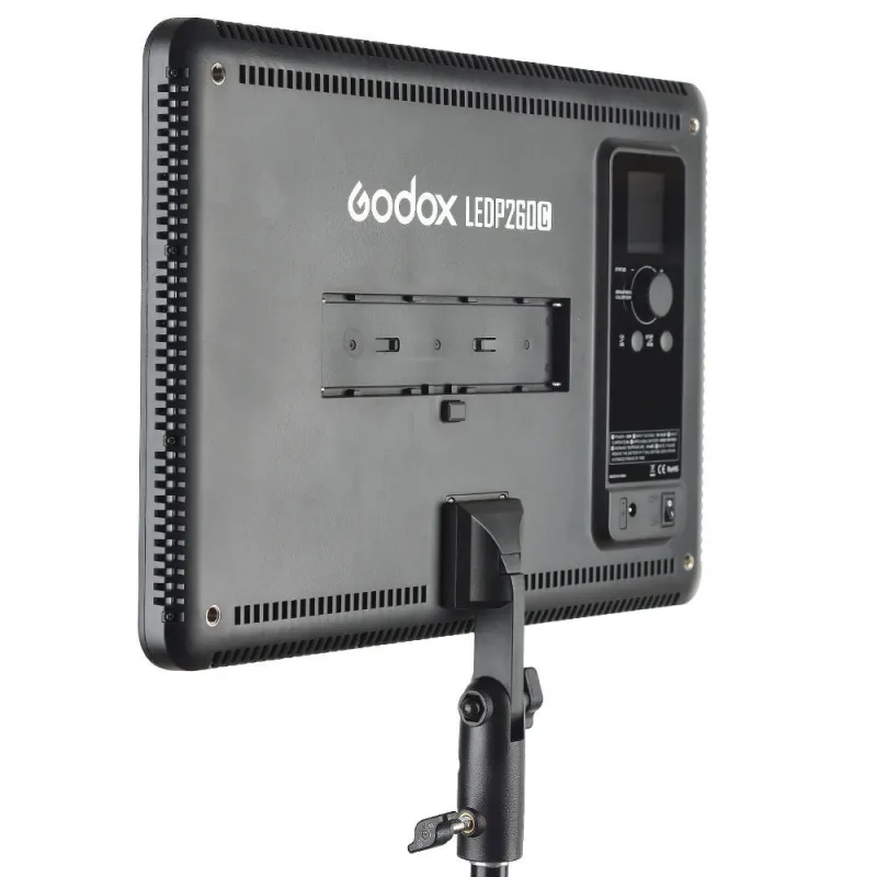 The Godox LEDP260C is a powerful LED panel with an adjustable colour temperature from 3300 to 5600K and a luminous flux of 2200 lumens measured at 0.5m. With a wide aperture angle, the Godox LEDP260C provides beautiful soft lighting for photography and video. With the included tripod adapter, the light can be placed on almost any studio tripod. This LED panel is perfect for macro photography, journalism, product photography, video shooting and much more. The video light can be powered by the included power adapter or two NP-F970 Li-ion batteries (sold separately).
