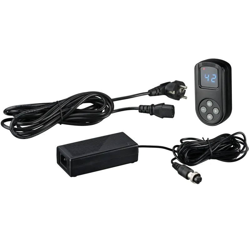 - Included: LED light, power adapter (cable length approx. 8.6 m), remote control (battery-operated, 2x AAA batteries not included), carry case, instructions