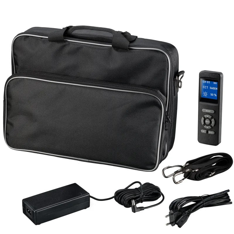 - Scope of delivery: 1x RGB Daylight LED light, 1x U-bracket, 1x power supply unit, 1x remote control, 1x transport bag