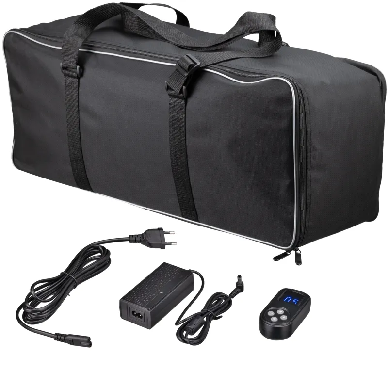 36 watts can be operated via mains power or, conveniently, with optionally available rechargeable