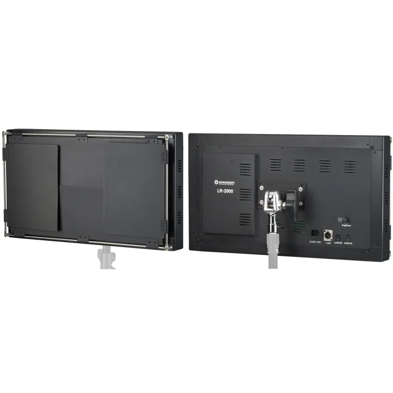 BRESSER is an important player in the development of high-quality LED lighting for photo and video studios. Continuous further developments are applied in new models, such as the new LR series, which is equipped with LED SDM chips with a CRI ≥ 95% . The BRESSER LR-2000 is ideal for use in portrait and product photography as well as video recordings. The color temperature of 5600K is similar to daylight. The diffuse filter can be illuminated with a flicker effect at a short distance. Thanks to the 4 light flaps and the unique, removable honeycomb grille, the light can be bundled and aligned as required.