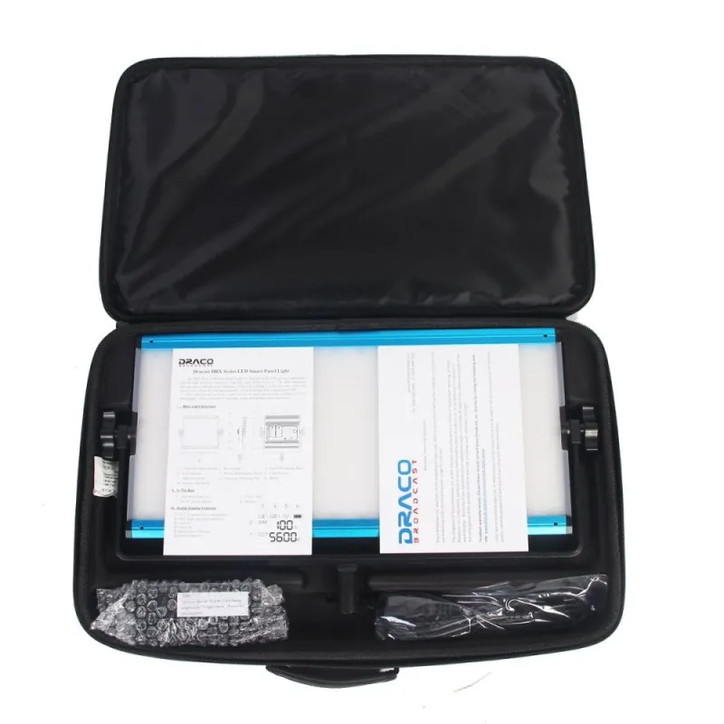 Patvarus anodizuoto aliuminio korpusas su vartotojui patogia sąsaja. Įtrauktas montavimo laikiklis, iš anksto sumontuotas difuzijos filtras, barn doors ir minkšta transportavimo dėžė.