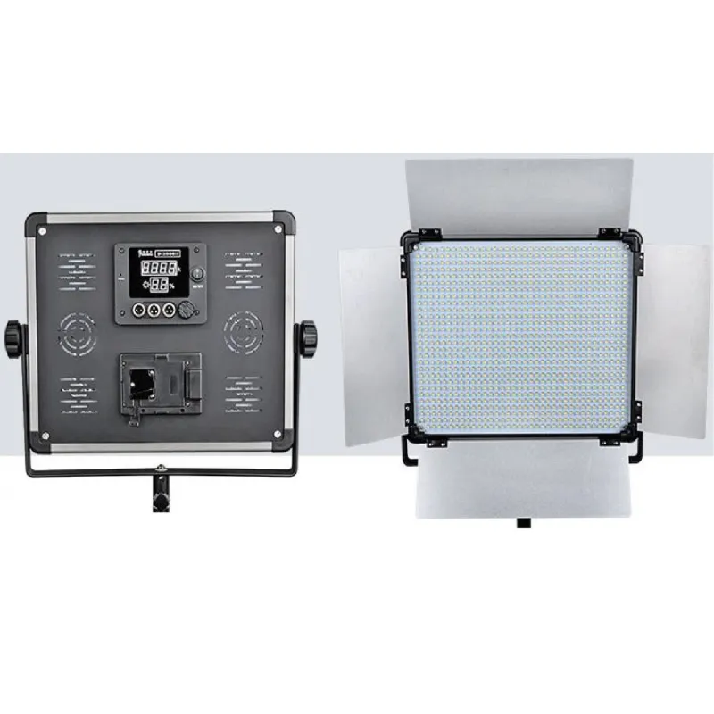 140W Bi-color LED video light, 3200-5500K, 11000 lm, 95 RA, 60° beam angle, DMX 512 protocol support. Battery (not included) or 14.5V= power supply. Includes carrying bag.