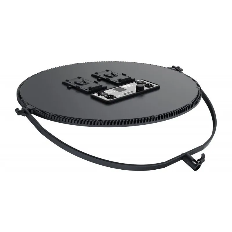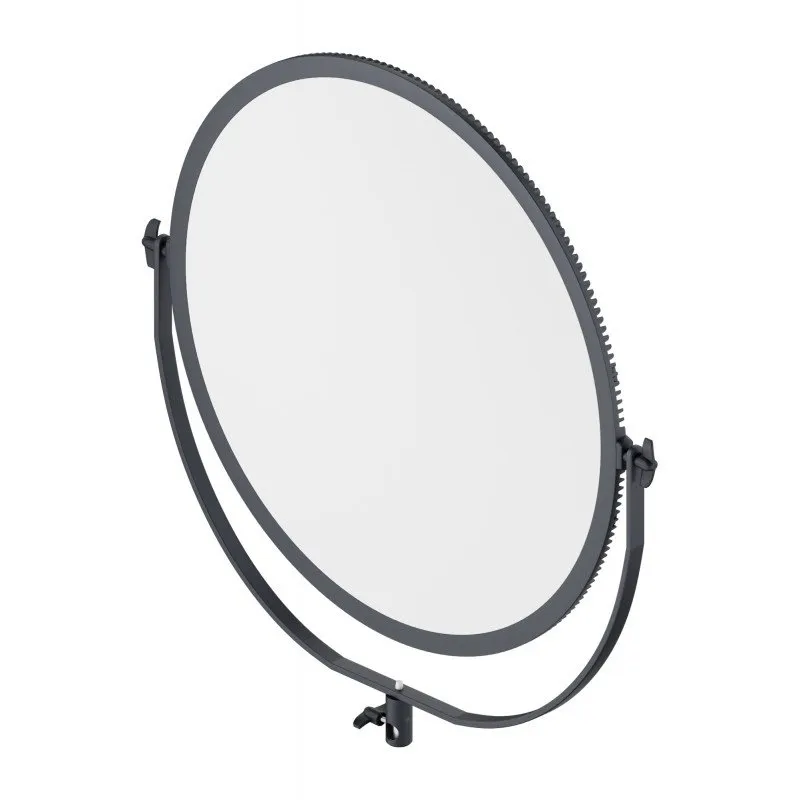 Galingas apvalus LED skydelis, 55,8 cm skersmens, 110 W galingumas, 7000 liumenų šviesos srautas, reguliuojama spalvų temperatūra 2500-8500 K, integruotas difuzorius, 2 V-Mount lizdai, nuotolinis valdymas, DMX sistemų palaikymas.