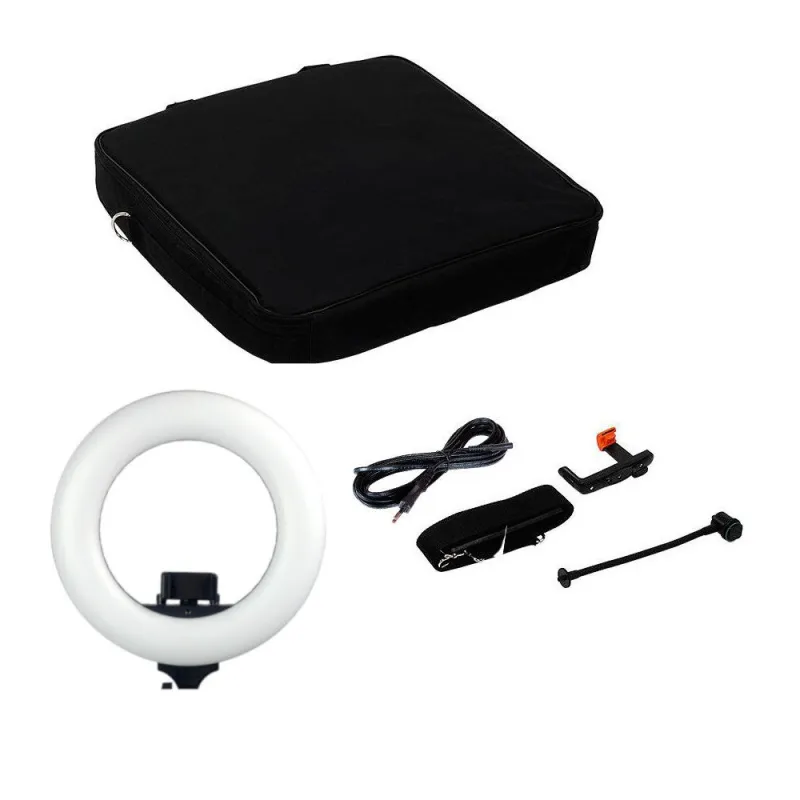 Caruba Round Vlogger 12 inch LED Set with Bag - Black The Caruba Round Vlogger 12 inch LED ring lamp is the ideal ring lamp for vloggers and model photographers. The lamp has an adjustable color temperature from 3200 to 5800K, with which you can perfectly set the exposure under any lighting condition. Place the included smartphone holder in the ring lamp and you can get started. This way you have the ideal set-up for making the perfect selfie or beauty vlog.