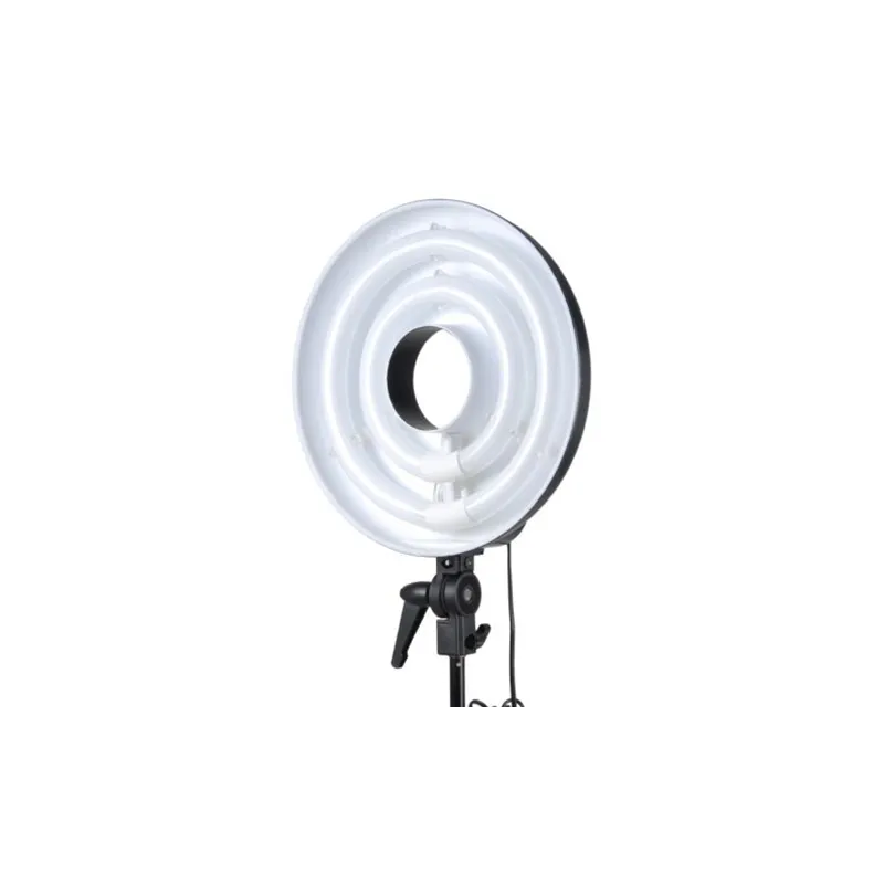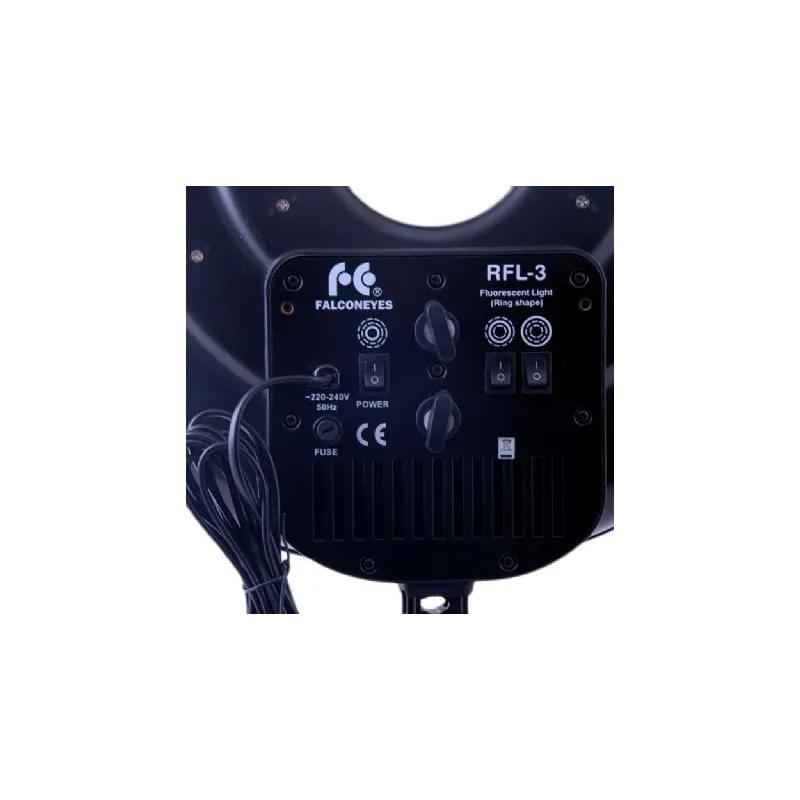 The Falcon Eyes RFL-3 90W Ring Light is equipped with 3 lights with a capacity of 22W, 28W and 40W. Due to its strong, lightweight (1.6kg) and stylish design, the RFL-3 is ideal for product photography, portrait photography and videography.