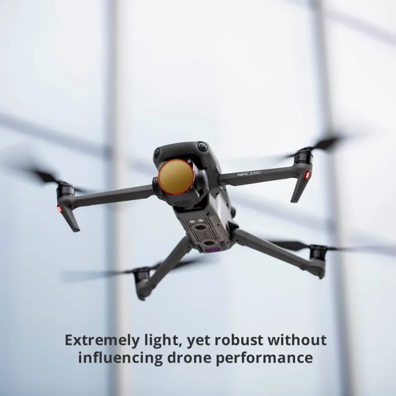 The PGYTECH DJI Mavic 3 Pro CPL Filter (Professional) eliminates glare from reflective surfaces such as water, snow or even glass windows when flying outdoors. It increases color saturation and image clarity to create more expressive and vivid photos.