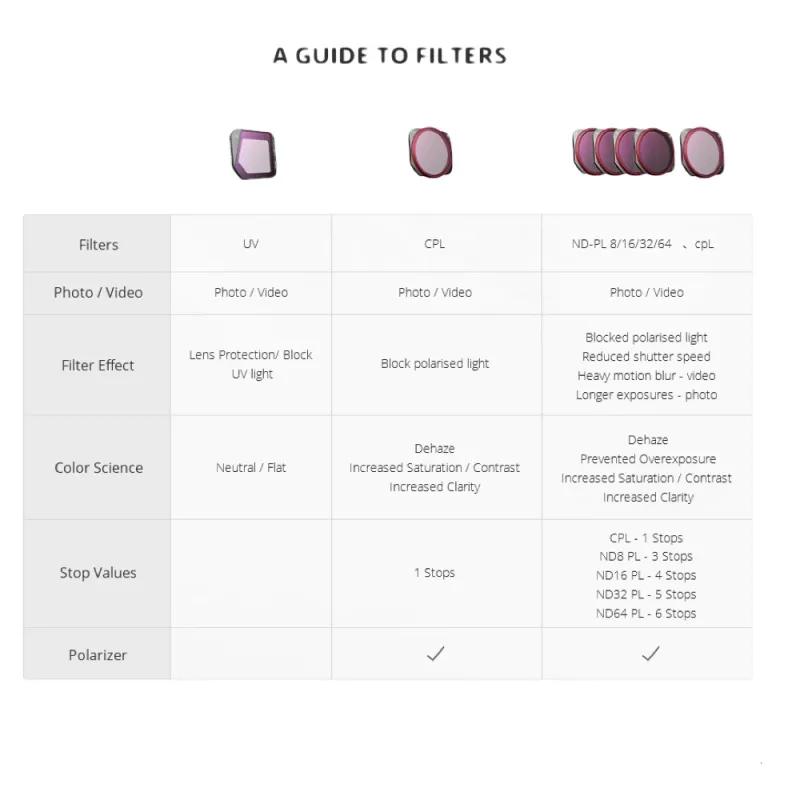 The filters double sided, multi layer coating repels water and oil, making it easy to keep clean. The hard coating also makes the filter scratch resistant. It is ultralight and does not affect the calibration and balance of the drone. It is also designed with quick release design. ,