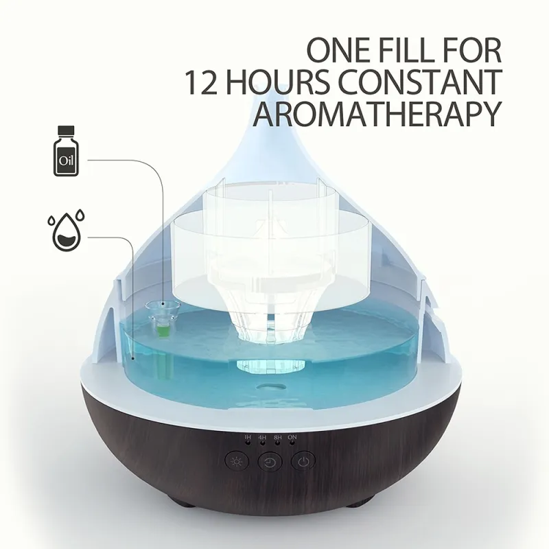 12 Hours of Consistent Scent & Aromatherapy with OneFill technology. With one single fill (around 1.5ml / 30-40 drops), the scent will last 11-15 hours in low mode and 6-10 hours in high mode. With other diffusers, oil must be added constantly due to diminishing scent