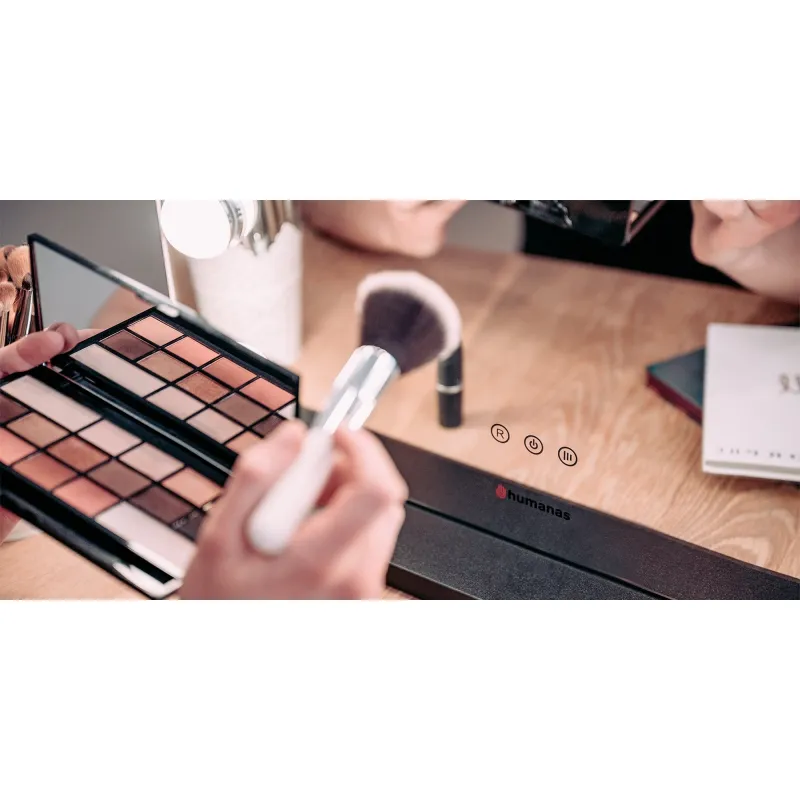 The Humanas HS-HM02 mirror allows you to select one of 3 color temperature levels. Depending on the time of day and the characteristics of the makeup you want to achieve, you can illuminate your face with warm, neutral or cold light. This allows you to better match your makeup to specific needs. Different color temperature variants allow you to precisely match the color of the light to your skin tone and the characteristics of the cosmetics used. This will allow you to achieve a professional makeup at home!