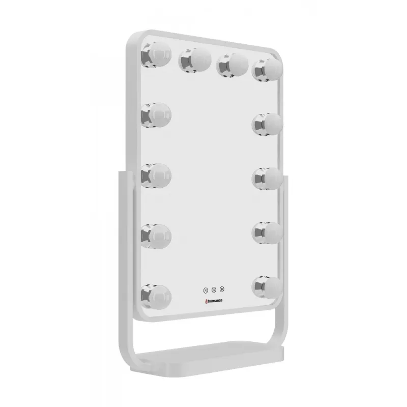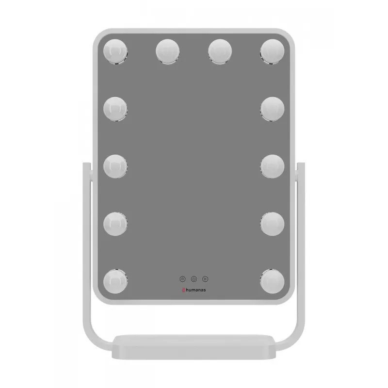 Large, elegant mirror Humanas HS-HM01, equipped with 12 energy-saving LEDs will help you perform daily or evening makeup. Proper lighting is essential in the work of every make-up artist. Now you too can feel like a professional in your home beauty salon. The mirror is equipped with a touch panel that allows you to adjust the power and color temperature of light.
