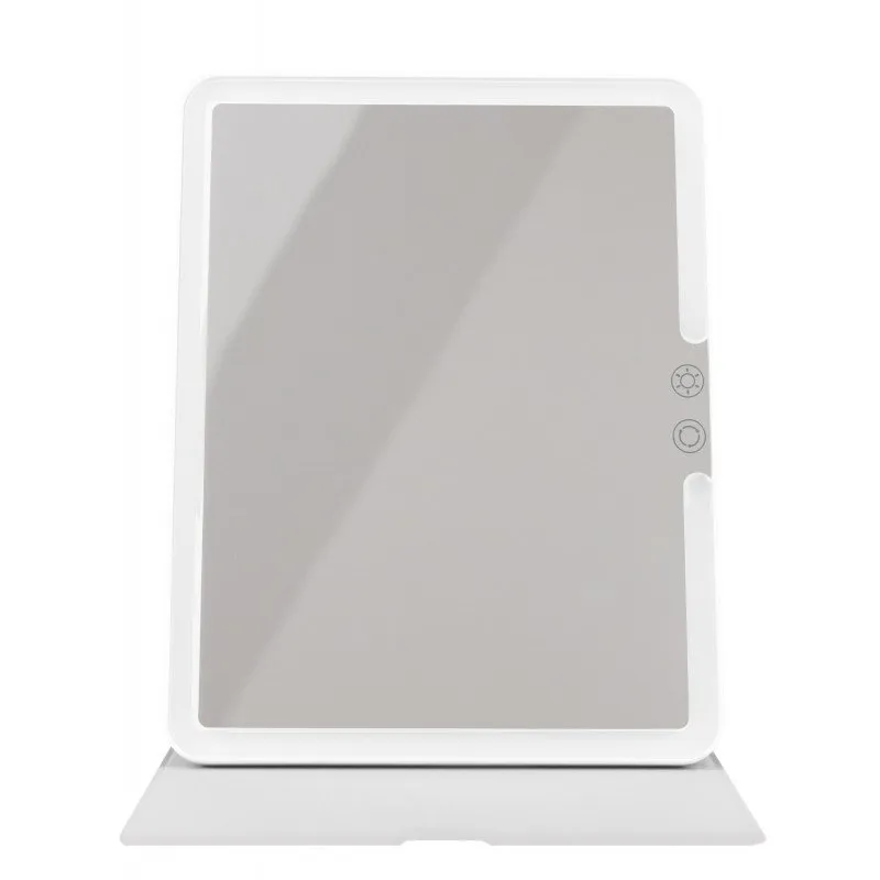 The Humanas HS-ML02 makeup mirror is an ideal choice for people who value independence, compact size and ultra-mobility. Its slim tablet-like design will fit into any suitcase, backpack or laptop bag. No matter where you take your makeup, the LEDs will provide even and soft illumination for your face. You can also easily adjust the brightness and color temperature of the light to suit your needs. An ergonomic fold-out stand that also serves as a protective case allows you to freely set the design on a flat surface. When you buy the Humanas HS-ML02 mirror, you are not only choosing functionality, but also style and excellent quality. Main product features a makeup mirror that with its dimensions (25 x 19.1 cm) resembles a tablet slim design (only 1.5 cm thick) that will fit in a backpack, suitcase or laptop bag stylish protective case that acts as a stand ideal choice for people who travel frequently a great way to save space on your desk or home dressing table adjustable light output 3 variants of light color temperature: warm, cold and neutral provides optimal lighting conditions during daily grooming and makeup application energy-efficient LEDs ensure long life 2 touch-sensitive buttons integrated into the surface of the mirror etui permanently connected to the mirror easy to clean magnetic locking charging via USB-C port LED indicating charging process USB-A / USB-C cable included The perfect travel companion The Humanas HS-ML02 makeup mirror with LED backlight is an ideal choice for people who value independence and ultra-mobility. With its dimensions and unique design it resembles a tablet. It will successfully fit into a backpack or suitcase. Whether you are on a business trip, on a weekend "city break" or on a spontaneous trip with friends, this mirror will allow you to take care of your appearance without taking up much space in your luggage. Perfect make-up in any situation Humanas HS-ML02 makeup mirror is a guarantee of perfect illumination, essential when applying makeup or daily grooming. Now you can enjoy a bright and clear reflection no matter where you are. LEDs hidden under the milky plastic will provide you with even and soft illumination of your face in any situation. Convenient unfolding Thanks to the functional folding stand integrated into the housing, you can set the Humanas HS-ML02 makeup mirror on any flat surface. Its dimensions will allow you to apply precise makeup without having to constantly change position. And when you're done with all your skincare routine, simply fold the mirror into its transport position. Thanks to its ultra-slim design (1.5 cm), it won't take up any more space in your luggage than your carry-on calendar. Adjustable backlighting power Humanas HS-ML02 mirror is a guarantee of full control over the intensity of the light. When you're getting ready for a party or an important meeting, you can increase the power of the backlight for a bright and precise reflection that will help you accurately apply your makeup and highlight the finest details. During daily grooming, the light can be slightly less intense so you don't have to strain your eyes. Just hold the touch button longer to smoothly adjust the brightness to perfectly suit your current needs. Light for every occasion Depending on the time of day and the effect you want to achieve, you can illuminate your face with cold, neutral or warm light. The adjustable color temperature offered by the Humanas HS-ML02 mirror allows you to choose the color of the light to perfectly reflect your skin tone and the makeup you put on your face. All you have to do is press the touch-sensitive button with your finger and the device will quickly switch to the next mode. Integrated case The Humanas HS-ML02 makeup mirror comes with an integrated case, which is made of durable, easy-to-clean material. A single wipe is enough to remove any stains, traces of makeup or dust. Thanks to this case, the mirror will always look like new, maintaining its elegant and stylish appearance. The expandable stand is also an excellent protection. The closed case will effectively protect the mirror while traveling. Mirror for years Thanks to modern technology, the Humanas Humanas HS-ML02 mirror is not only environmentally friendly, but also ensures long-lasting use. The LEDs used are so durable that they do not need to be replaced for many years, which means that the device will serve you with excellent illumination quality for a very long time. Long time of operation Choosing the Humanas HS-ML02 mirror with LED backlight, you don't have to worry about replacing batteries. Hidden under the casing is a battery with an impressive capacity of 2000 mAh. You charge it using the popular USB-C port. You can do this anywhere by reaching for the included cable and connecting the device to a charger, laptop or power bank. A small LED light will let you know when the charging process has begun, so you can always be sure the mirror will be ready for use when you unplug it from the power source. Gift idea Do you want to surprise a loved one with a practical gift? Or maybe you know someone who dreams of a functional and portable makeup mirror? Humanas HS-ML02 is an unusual gift idea for all fans of good design and the art of makeup! Regardless of the occasion - birthdays, holidays, or anniversaries - this elegant mirror is sure to bring a lot of joy to the gifted person. Specification model: Humanas HS-ML02 LEDs: 98 light color temperature: 3500 - 7000 K (±500 K) charging: USB-C (DC 5V / 1 A) rechargeable battery: 2000 mAh max power: 5.35 W (± 1 W) voltage: 3.7 volts material: glass, ABS plastic dimensions: 250 x 191 x 15 mm weight: 654 g Set contents Humanas HS-ML02 makeup mirror with LED backlight - white USB-A / USB-C cable