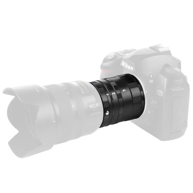 Meike Extension Tube Set - Nikon The Meike Extension Tube Set consists of three extension tubes that allow you to significantly enhance the macro capabilities of your current lenses without sacrificing quality. When using the TTL metering system, no exposure compensation is required.