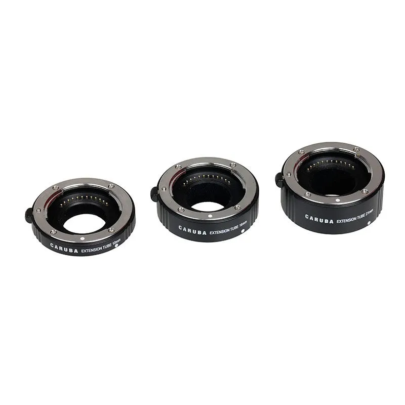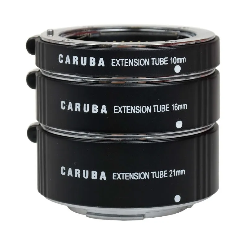 The Caruba Extension Tube set for Nikon consists of three extension tubes that can be used separately, or combined. The extension tubes do not have any optical elements, which makes it possible to photograph subjects larger and from a closer distance, without changing the quality of the image. The extension tubes have a chrome base and are compatible with Nikon 1-series lenses. Features such as auto focus and TTL light metering continue to work as usual. However, manual focusing is recommended, as focus is very tight.