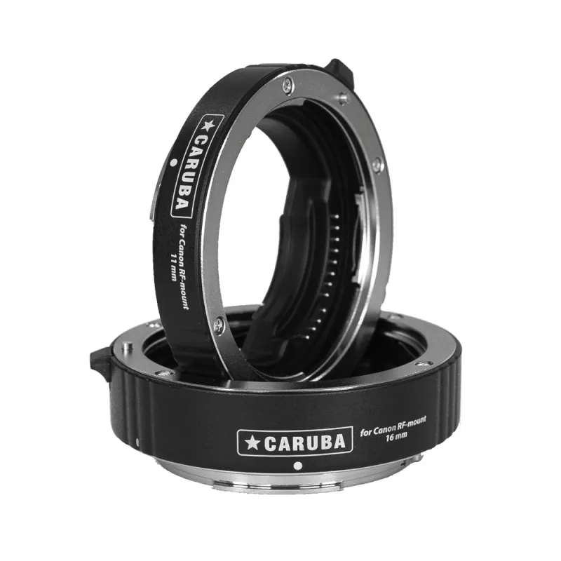 Caruba Extension Tube set Canon Chroom (type II) RF-SERIE (for Canon RF-cameras) The Caruba Extension Tube set for Canon RF consists of two extension tubes that can be used separately, but also combined. The extension tubes do not have any optical elements and therefore it is possible to photograph subjects larger and from a closer distance without changing the quality of the image. The extension tubes have a chrome base and are compatible with Canon RF lenses. Features such as auto focus and TTL light metering continue to work as usual. However, manual focusing is recommended, as focus is very tight.
