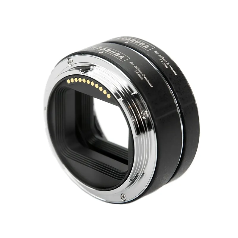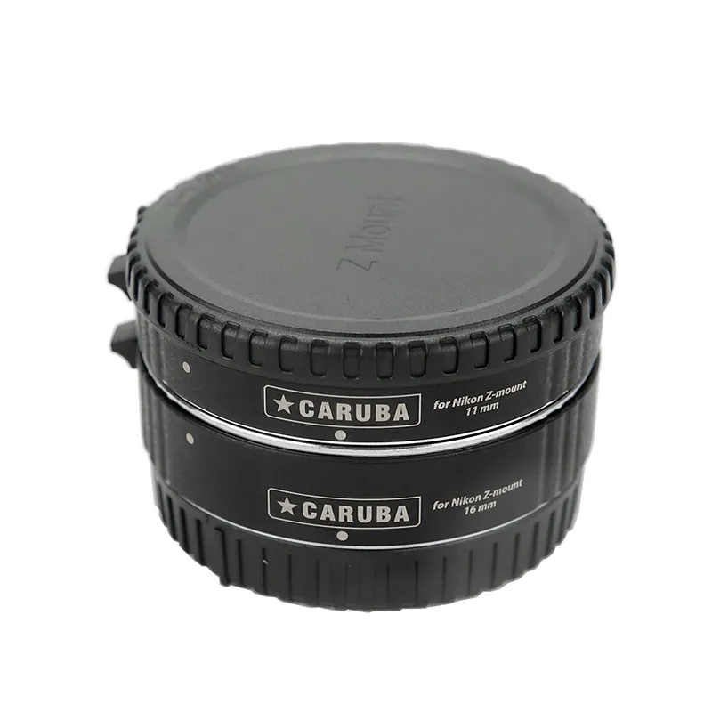 The Caruba Extension Tube set for Nikon consists of three extension tubes that can be used separately, or combined. The extension tubes have no optical elements, which makes it possible to photograph subjects larger and from a closer distance, without changing the quality of the image. The extension tubes have a chrome base and are compatible with Nikon F lenses. Features such as auto focus and TTL light metering continue to work as usual. However, manual focusing is recommended, as focus is very tight.