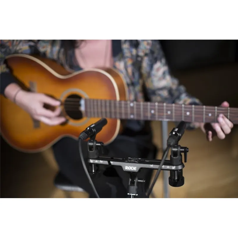 The RØDE Stereo Bar is a bar for mounting two microphones in stereo up to 20mm pitch.