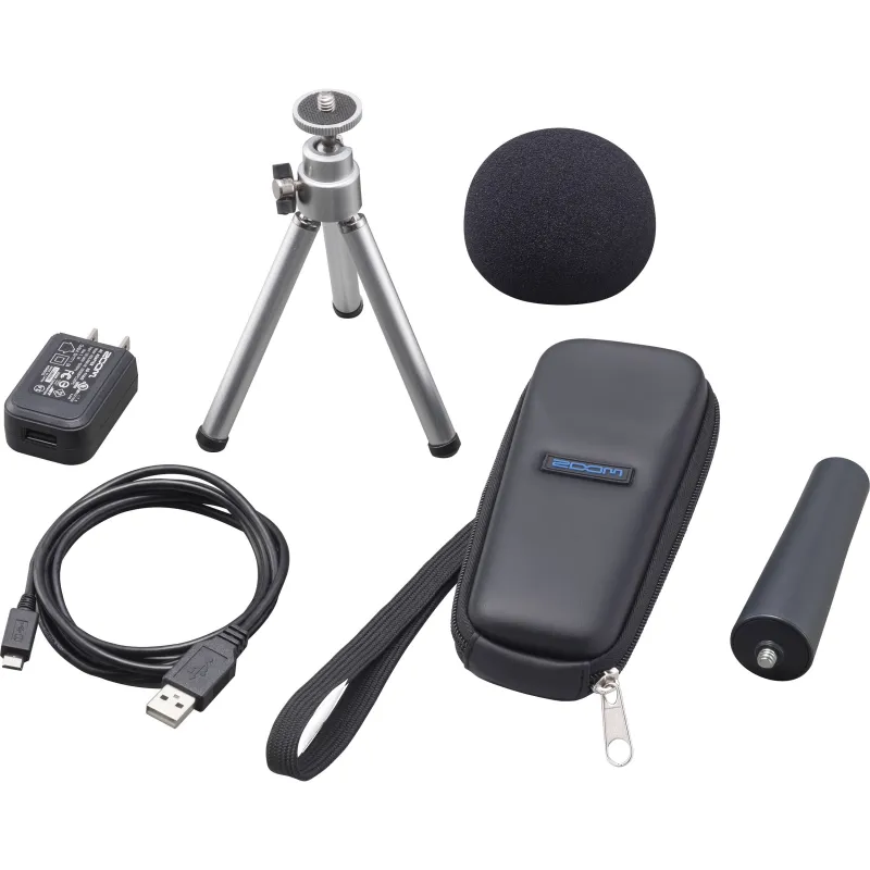 The Zoom APH-1n is an accessory pack for the Zoom H1n. It includes a windscreen for the built-in microphones, as well as the AD-17 AC adapter, a USB cable, a tripod stand, a padded shell case for the recorder, and an MA-2 tripod-to-mic stand adapter.