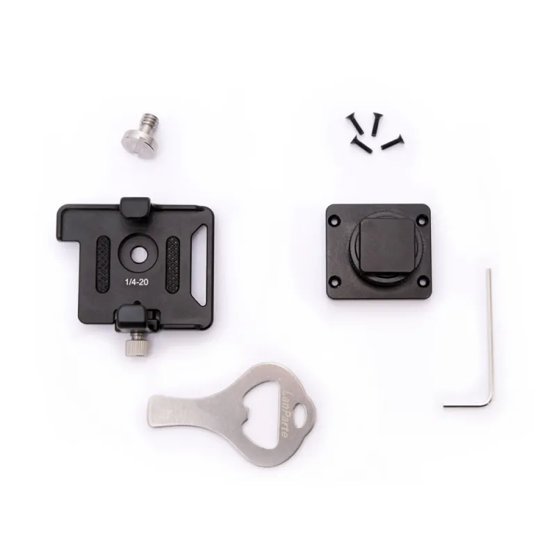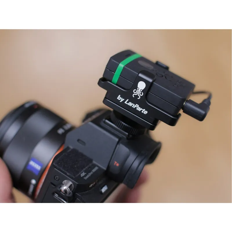 This lightweight aluminium bracket for the Tentacle SYNC E is exclusively manufactured by LanParte. It can be mounted to any camera rig or directly to a camera with the included 1/4” screw. Easily slide-in mechanism for the SYNC E box. A little clamp offers secure fastening. This version comes with an additional cold shoe mount. So you can assemble them to one unit that can be attached to the camera via cold shoe mount or use the basic bracket version with the 1/4 inch screw.