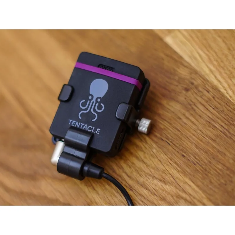 Our lightweight aluminium bracket for the Tentacle SYNC E with an additional Cold Shoe Mount.