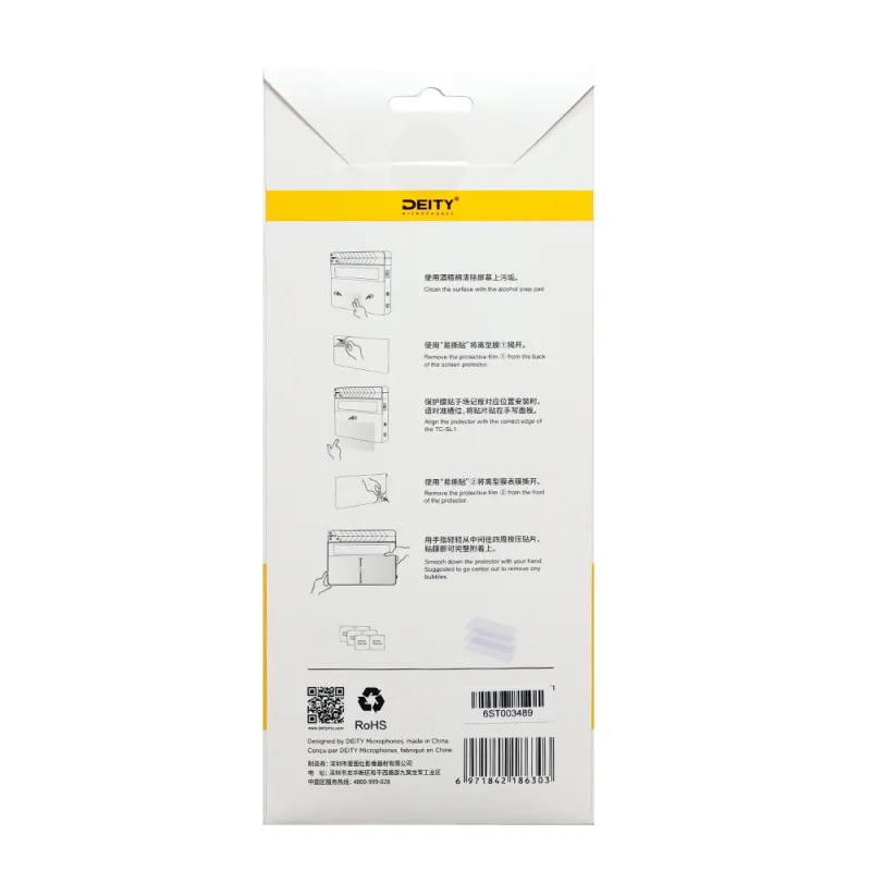 The TC-SL1 Screen Protector comes with a sticky adhesive that has an anti-bubble feature when it is being applied. This feature ensures that the screen protector is easy to install and does not leave any bubbles or gaps between the screen protector and the timecode slate faceplate. Additionally, the light transmittance through the clear screen protector is 90%, ensuring that the timecode slate backlight remains easy to see, even with the screen protector applied.