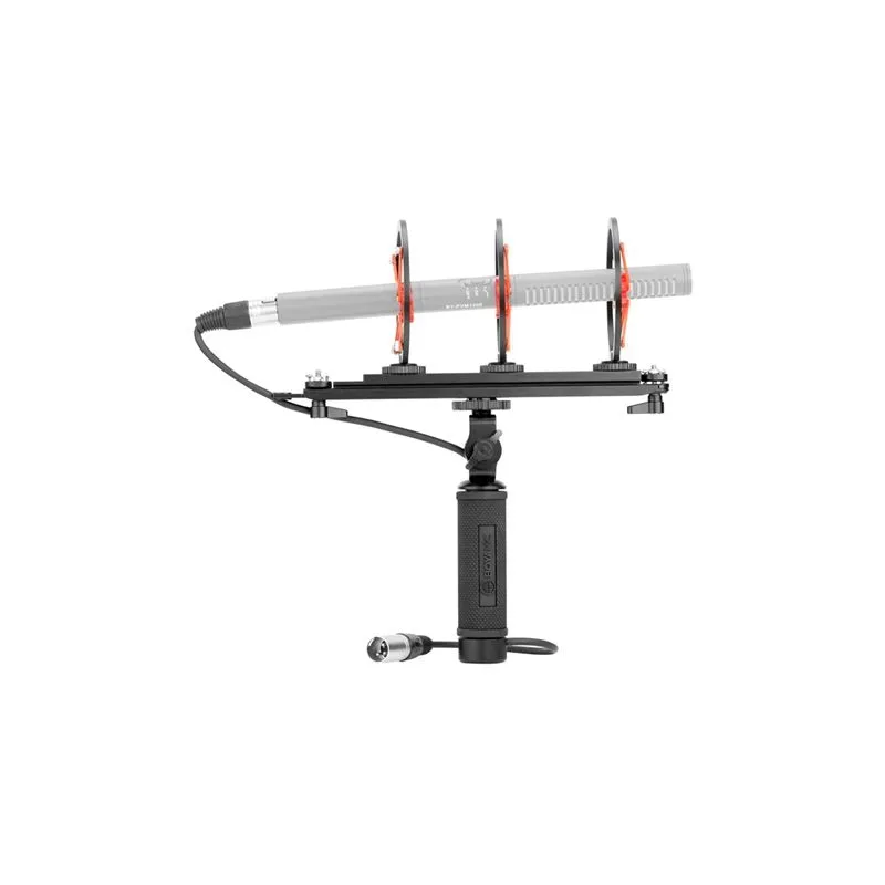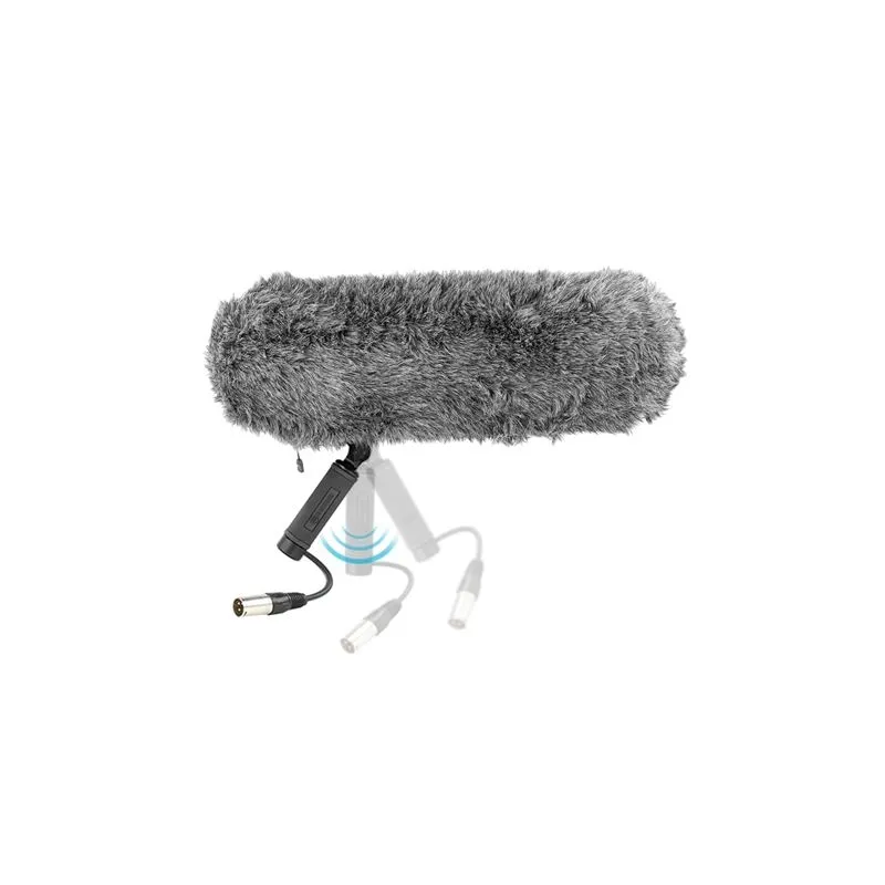 ;This Boya windshield with Anti Shock Microphone Mount is suitable for directional microphones that have a maximum length of 320 mm with a diameter of 20-22 mm. You can mount the microphone in the windshield to an XLR-female plug. From the lightweight handle with non-slip grip, this XLR cable emerges again, with an XLR-male connection.