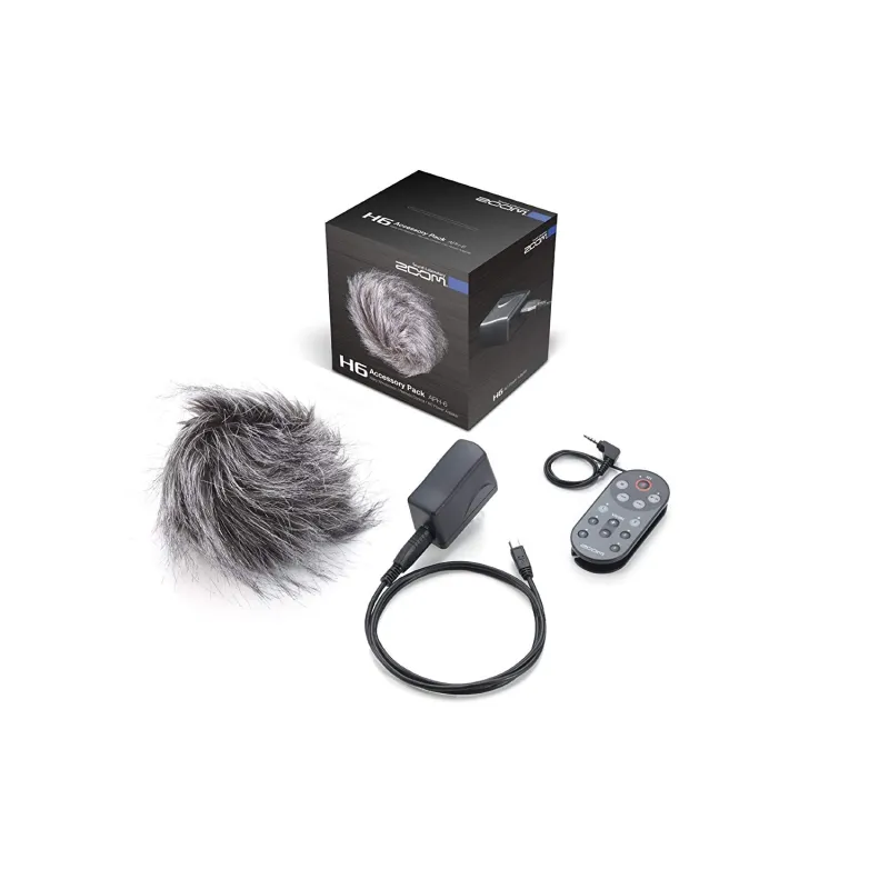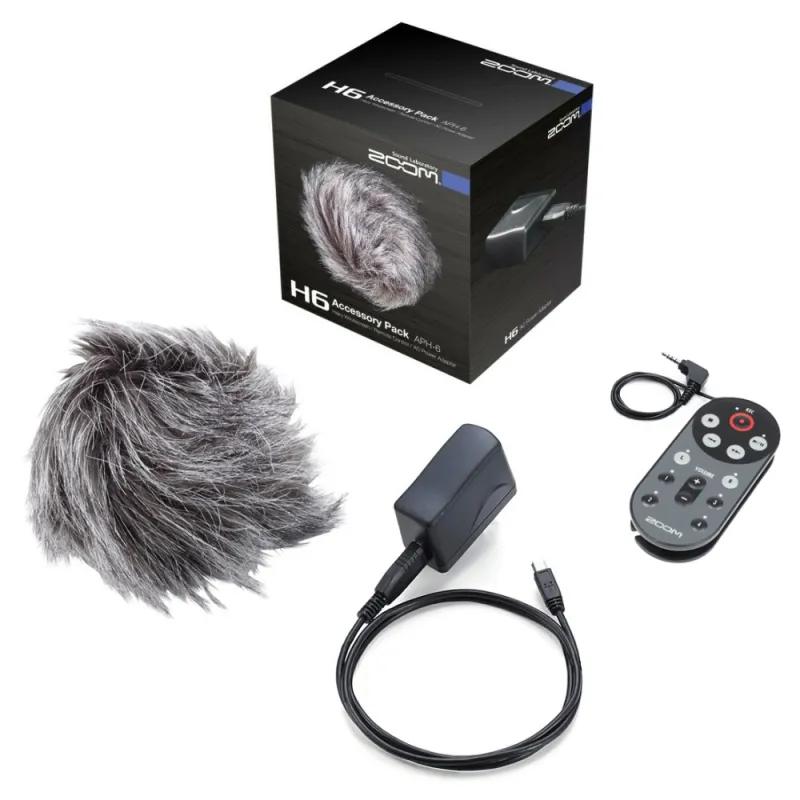 APH-6 H6 Accessory Pack The APH-6 is the perfect companion for your Zoom H6 Handy Recorder The APH-6 includes: RCH-6 wired Remote Controller AD-17 USB-type AC adapter Hairy Windscreen
