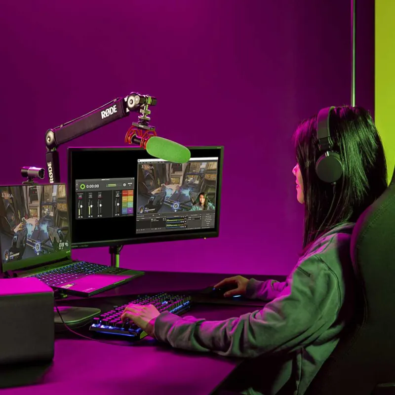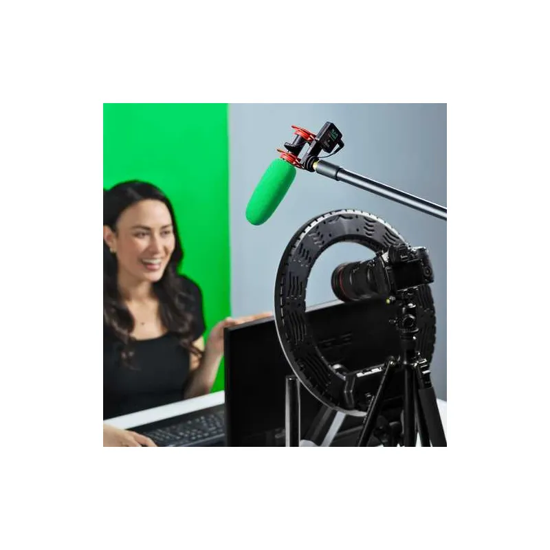 WS-Chroma is a set of two foam windshields for the VideoMic NTG coloured blue and green, making them suitable for chroma keying. The coloured foam enables the microphone to be placed in the frame and closer to the talent for optimal sound quality. Chroma key compositing can then be used to remove the microphone from the image.