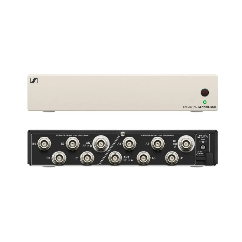 The EW-D ASA receives up to four wireless microphone signals through a single pair of antennas, split and amplifies these signals, and send each signal to their respective receiver via the included BNC cables.