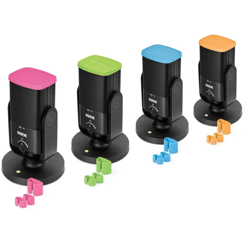 RODE COLOURS is a set of coloured covers for NT-USB Mini and coloured rings for RDE USB-C and USB-A cables. They serve to distinguish multiple microphones and cables for better and quick orientation.