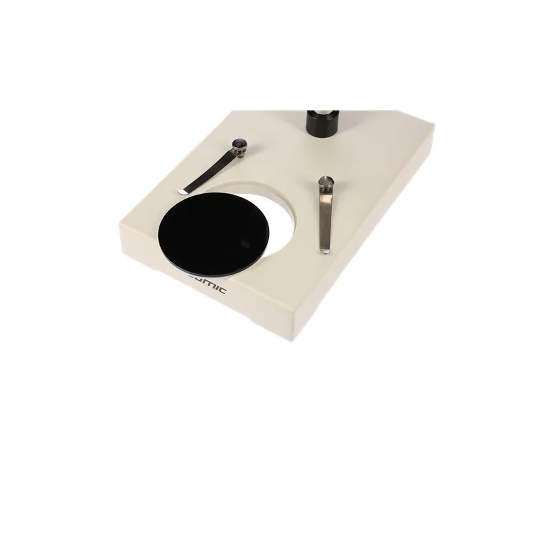The BYO-ST2 has a sturdy metal body with an integrated table of 110 by 75 mm. It is equipped with two solid clamps to keep a specimen in position, so it does not shift during observation. In the table there is a contrast plate of Ø60mm. This contrast plate is white on one side and black on the other side.