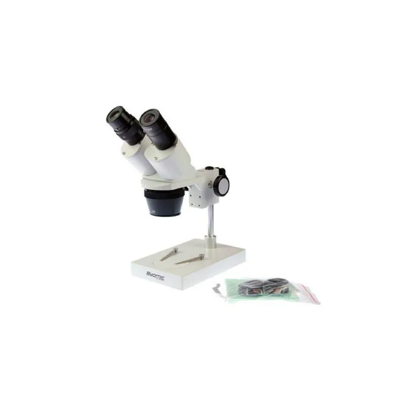 The Byomic Stere Microscope BYO-ST3 is an easy to use microscope and suitable for hobbyists but also for primary schools as well as secondary education. This microscope has two non interchangeable fixed objectives with a magnification of 2x and 4x. With the wide angle eyepieces of 10x it is possible to switch between 20x and 40x magnification.