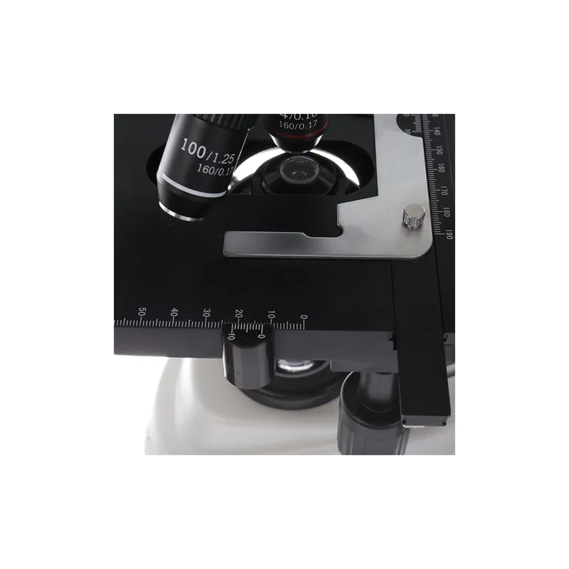 The BYO-500T has a metal housing with an integrated table of 140 by 105 mm which is equipped with a coaxial cross table making it possible to move the specimen without touching it. The coaxial coarse and fine focusing device on the right side of the table ensures very accurate observation. The table is adjustable in height from