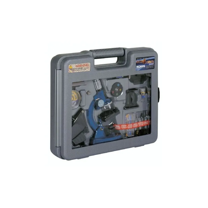 The Konus Konuscience Microscope has a magnification of 100x to 1200x and can be used for children and teenagers. The Konuscience has various viewing functions enabling the user to magnify or simply view objects or project an object onto the wall or a piece of paper (e.g. for drawing). The objects can be illuminated either through the supplied mirror or light. Further, the Konuscience is complete with 81 different accessories enabling the user to observe and experience the things that exist in the world around us unable to be seen by the naked eye.