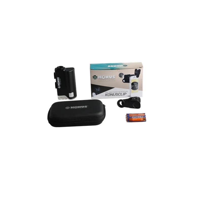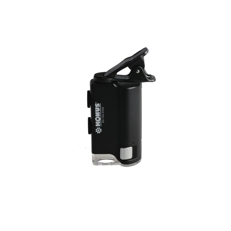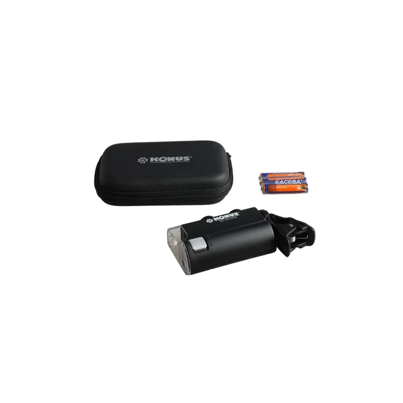 The Konus Konusclip 60x-100x is a high quality compact handheld microscope. Ideal for examining subjects wherever you find them. The Konusclip 60x-100x uses three AAA batteries to illuminate the object through bright LED lighting and for UV light. The Konus Konusclip 60x-100x has a high magnification, making it indispensable on the road.