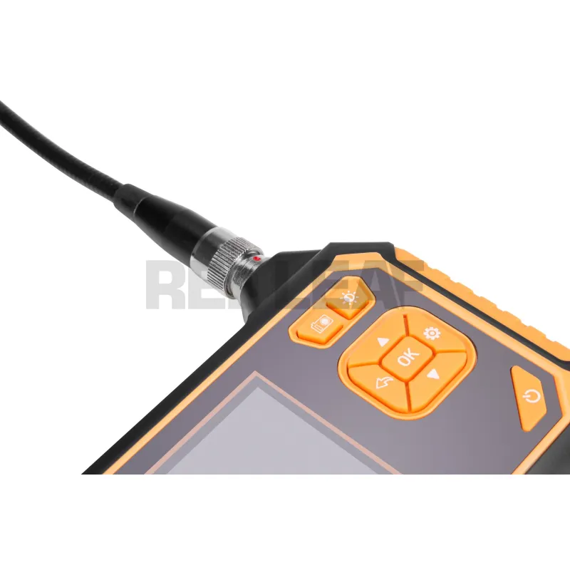 The images recorded with the Redleaf RDE-1005MR inspection camera can be viewed in real time on the included 4.3-inch LCD monitor. Profiled rubber grips ensure a secure grip during operation. The monitor module is also equipped with a bright flashlight and navigation buttons for easy control of endoscope settings.