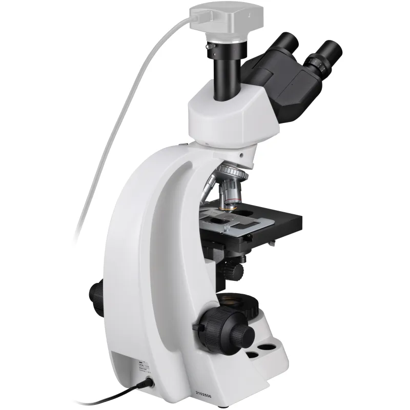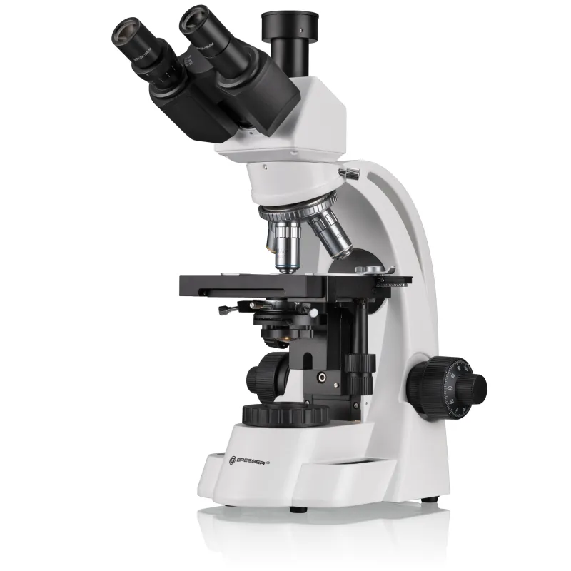 The BRESSER BioScience is the perfect instrument for laboratory use. The size and ergonomic design is perfect for prolonged use. The Köhler Illumination System provides a brilliant image quality . The trinocular tube will connect a MicroCam or other C-Mount microscope camera directly with the optional C-Mount adapter 5942101. An optional adapter (5942100) for DSLR and system cameras is also available.