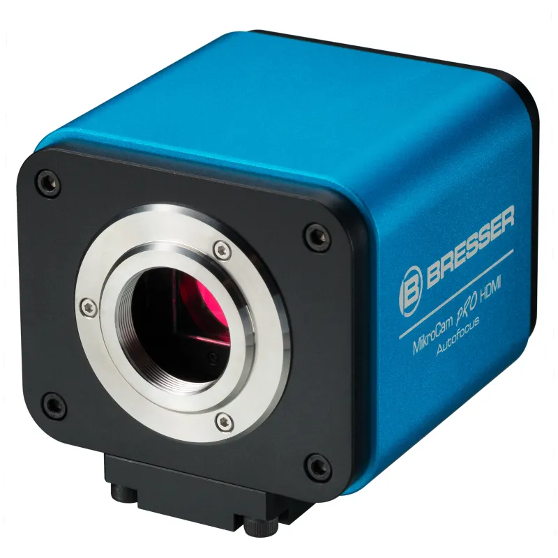 The BRESSER MikroCam Pro HDMI Autofocus delivers excellent image quality with ease of use . The microscopic image is transferred in Full HD resolution and without delay to a HDMI monitor or TV screen. An optional 11" HDMI screen is available under item code 5914110 and can be mounted on the camera directly. It gives brilliant images with high contrast.