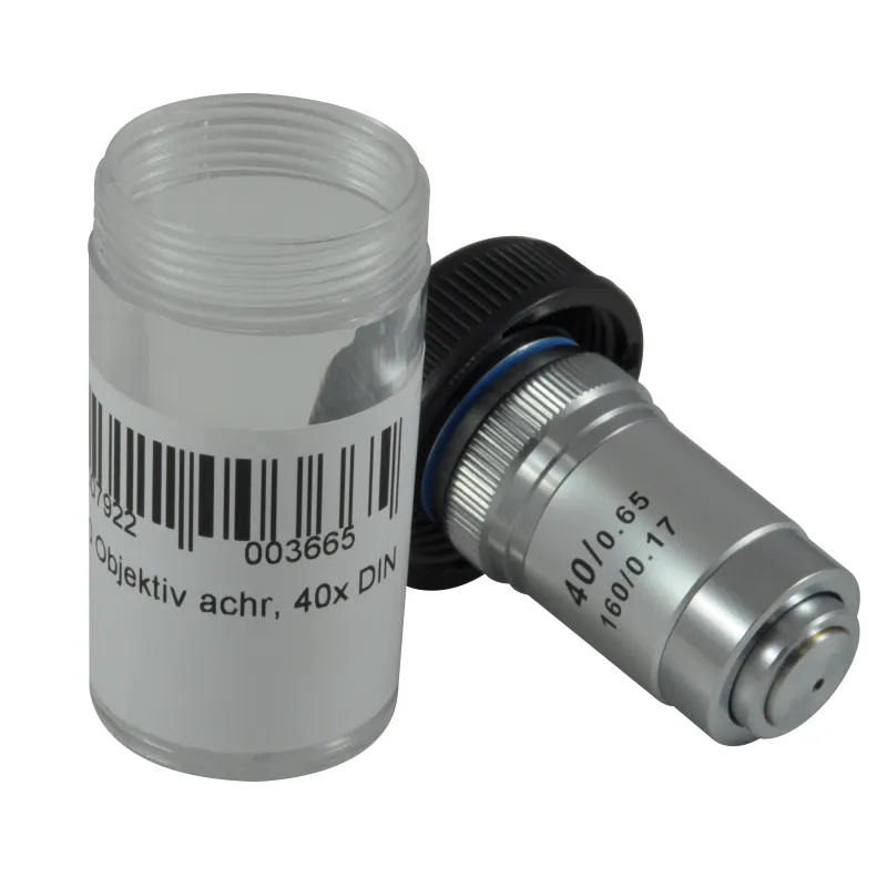 The BRESSER DIN-Objective 40x is an achromatic objective with standard diameter to enhance the magnification variety of your BRESSER Erudit DLX or Researcher Microscope. The objective has a parfocal length of 45mm. It is not recommended for the models Erudit Basic Mono/Bino, as these have a shorter parfocal length.