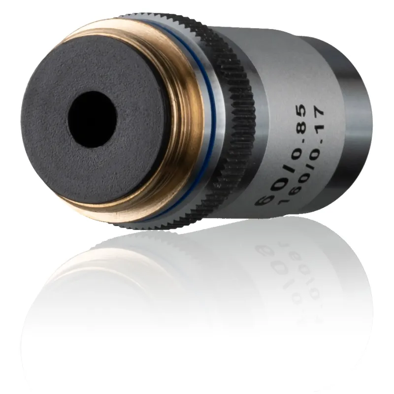 The BRESSER DIN-Objective 60x is an achromatic objective with standard diameter to enhance the magnification variety of your BRESSER Erudit DLX or Researcher Microscope. The objective has a parfocal length of 45mm. It is not recommended for the models Erudit Basic Mono/Bino, as these have a shorter parfocal length.