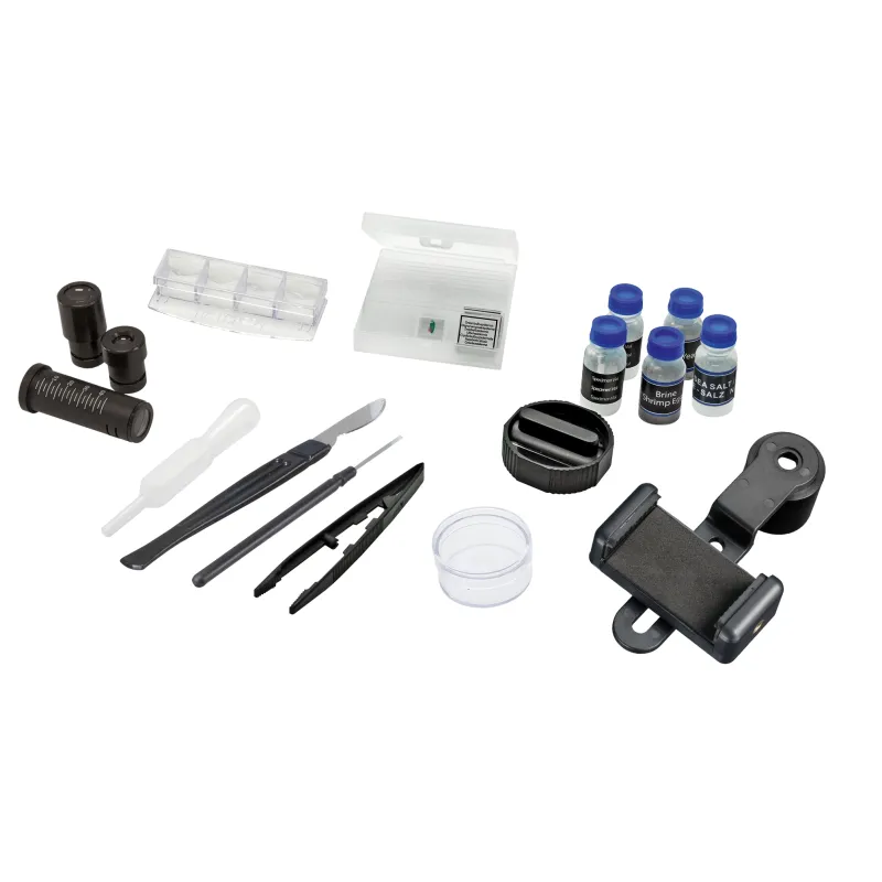 To ensure you're fully equipped, the accessories included provide the perfect introductory equipment . This includes, among other things, two wide-field eyepieces, a colour filter disk, many slides and storage containers. With its elegant Bresser design, the microscope has many useful features .