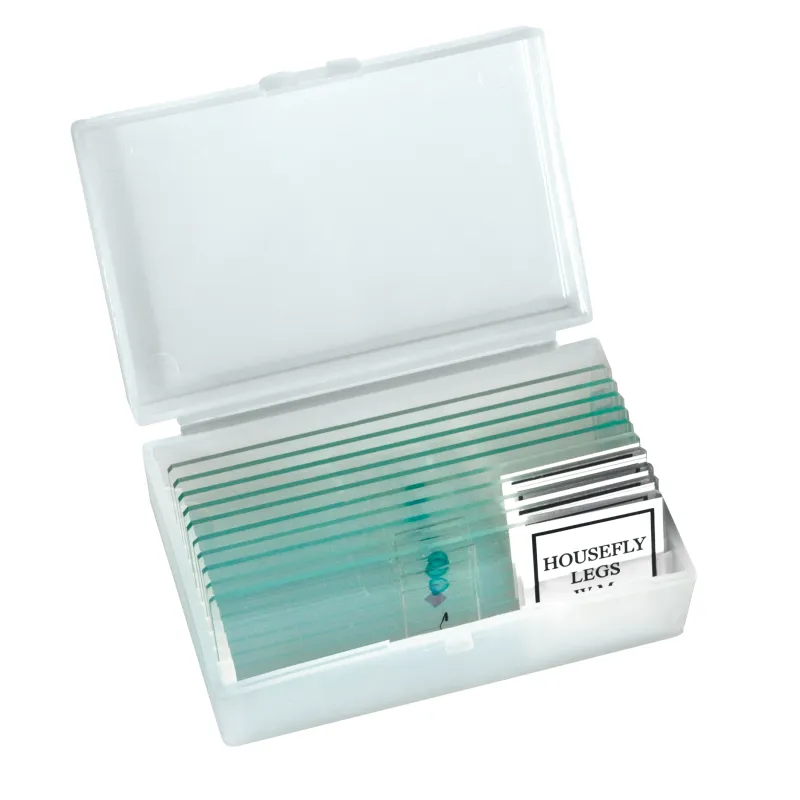 - Plastic box with 5 blank slides, 10 cover plates, 5 prepared slides