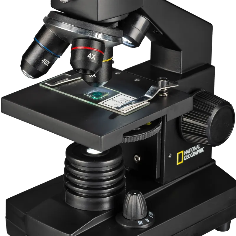 The NATIONAL GEOGRAPHIC 40x-1024x microscope offers a wide range of accessories for the beginner: Transport case, electronic HD eyepiece for connection to a PC, extensive slide set and a selection of permanent specimens - just unpack and microscope!