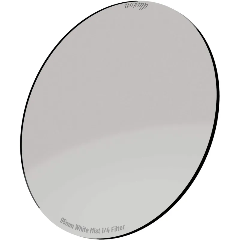 The 95mm, 1/4 grade Illusion White Mist Filter from Tilta is a nano-coated diffusion filter designed for the circular 95mm standard of the Tilta Mirage matte box. By reducing contrast and producing a subtle glow around light sources, this filter creates a soft visual atmosphere but still retains sharpness and as much detail in the shadows as possible. It's ideal for users who want to create a more pronounced, diffused visual style. The filter is made with premium water white glass and is crafted to prevent reflections and provide accurate color rendition.