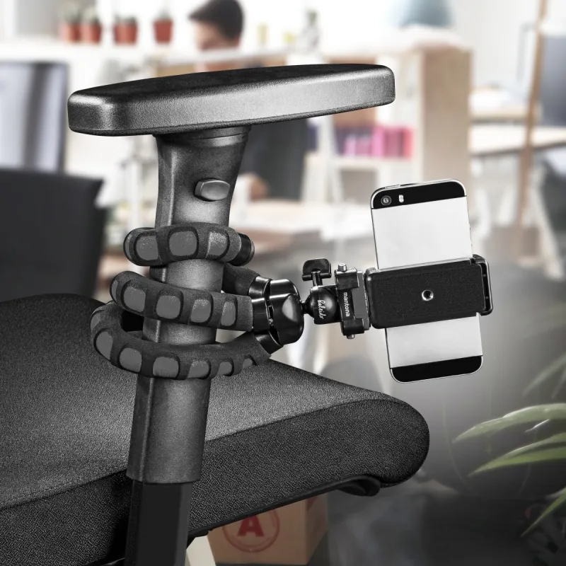 Can be extended with smartphone or GoPro adaptersThe kaleido flex can, of course, also take smartphones and action cams. Separately purchased GoPro adapters or smartphone mounts can be attached quickly and easily using the 1/4-inch thread connector.