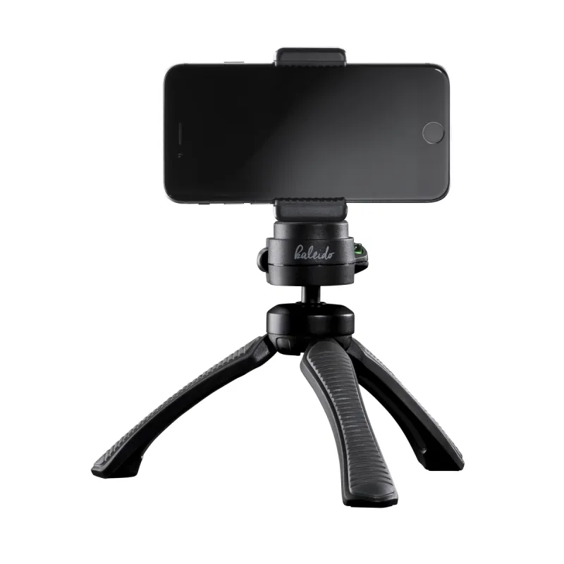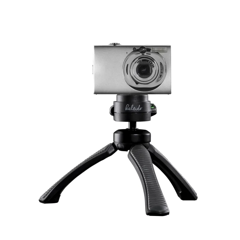 Kaleido flex as a table tripodWhen used as a table tripod, the kaleido cuts a fine figure. Thanks to the steady legs and non-slip rubber feet, the kaleido flex also be used as a table tripod. Kaleido flex can be adjusted to a working height of 10 to 27 cm. Using a 1/4-inch connector, you can attach light to medium-weight compact and system cameras, DSLR, DSLM and camcorders weighing up to 1.2 kg. The kaleido flex can be used as a hand tripod and facilitates and stabilises your shots, whether for shake-free videos or detailed photos.