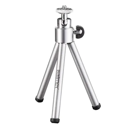 The walimex WT-070 Mini Tripod is the compact solution for crowded situations: It is ideally suitable for your digital or compact camera when using the automatic release, macro photography or reproduction. With the ball head you can work equally in portrait and landscape format and position your camera due to your requirements. The free rotatability around 360° ensures this. Thanks to the little dimensions and low weight, the Tripod is the ideal companion on travels, because it fits in even the smallest bag.