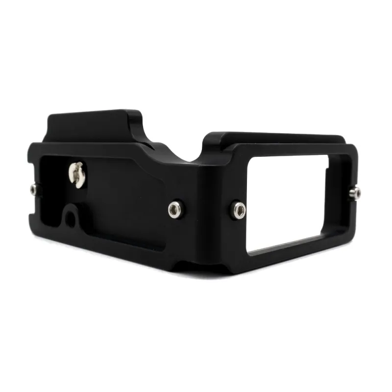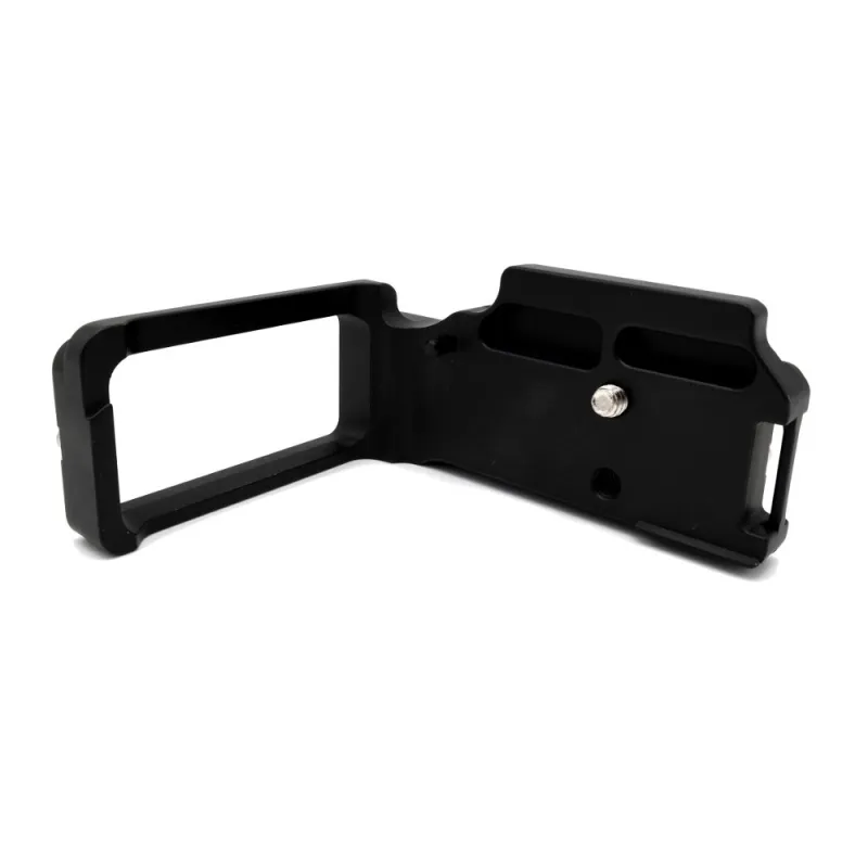 The L plate can be used to mount your camera on a tripod. The plate is a more stable attachment than an ordinary quick release plate. Using the L plate you can also easily and quickly switch from landscape to portrait mode without shifting the viewpoint. The construction of the L plate is such that all camera connectors are freely accessible.